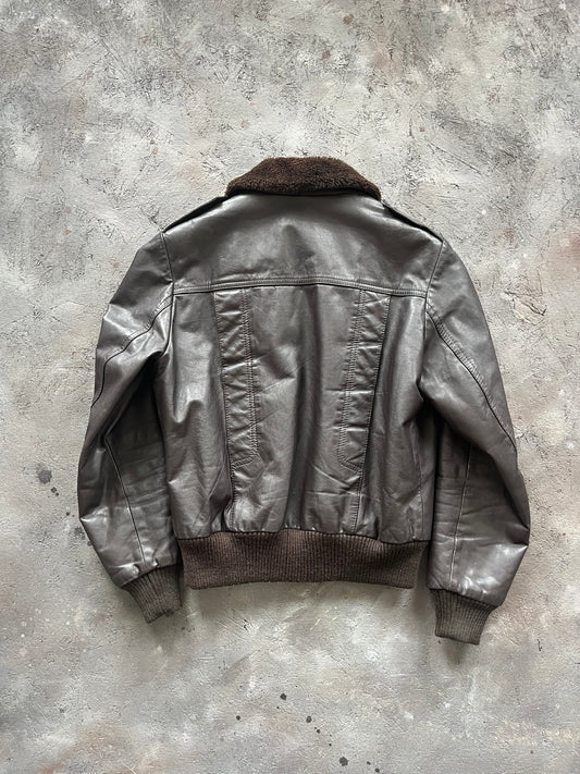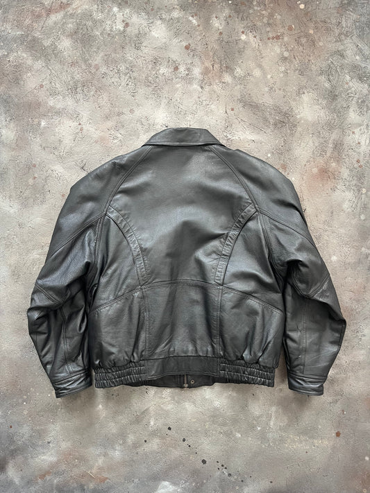 Vintage 1980s Sherpa Lined Leather Bomber Jacket - L