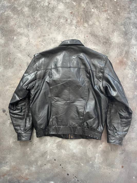 Vintage 1990s Black Leather Jacket - XL