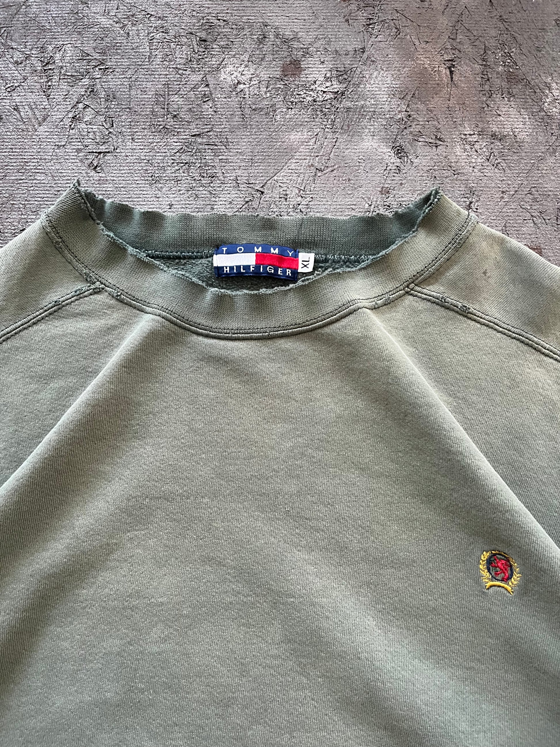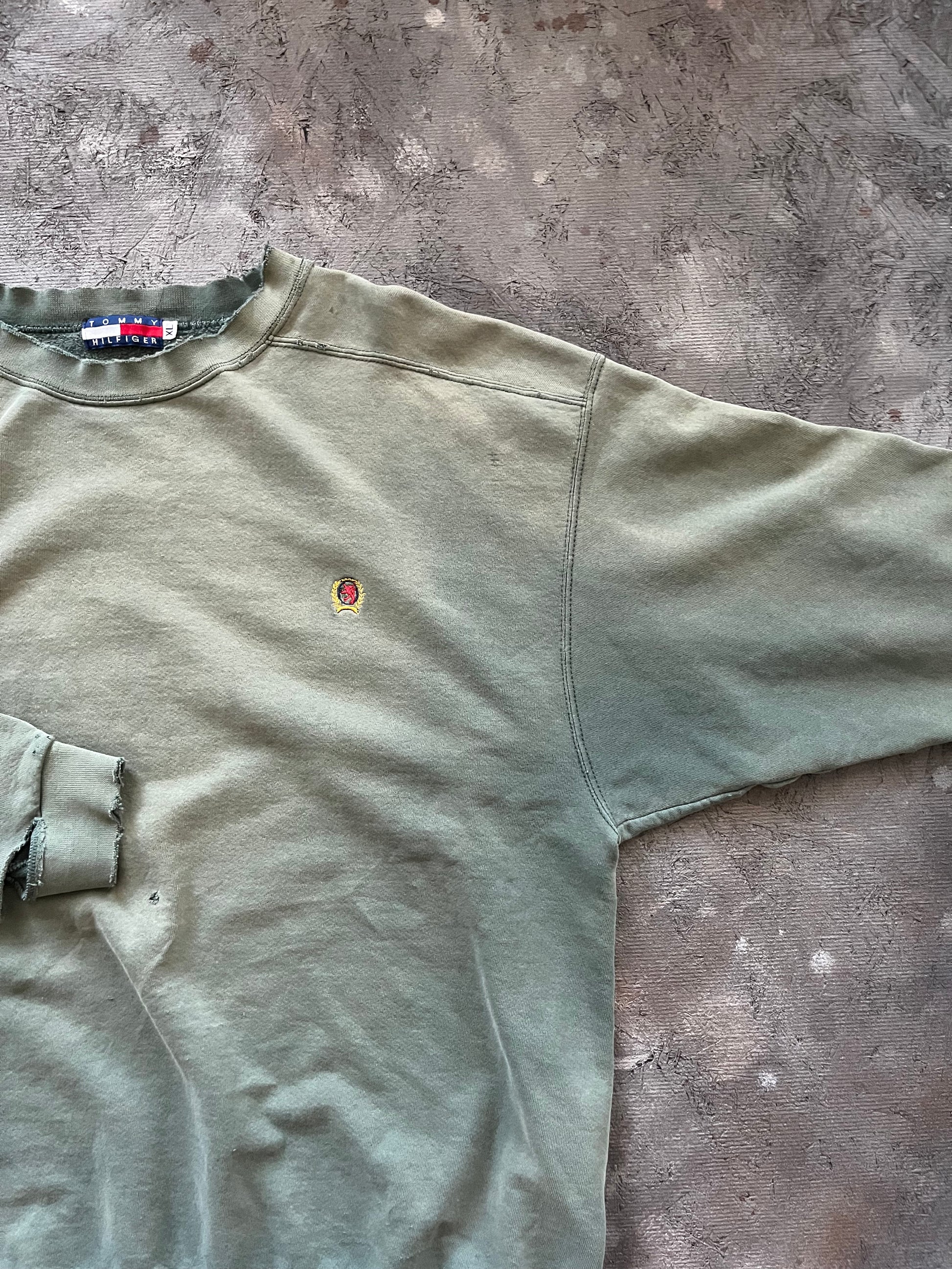 Vintage 1990s Faded and Thrashed Green Tommy Hilfiger Crewneck - XL